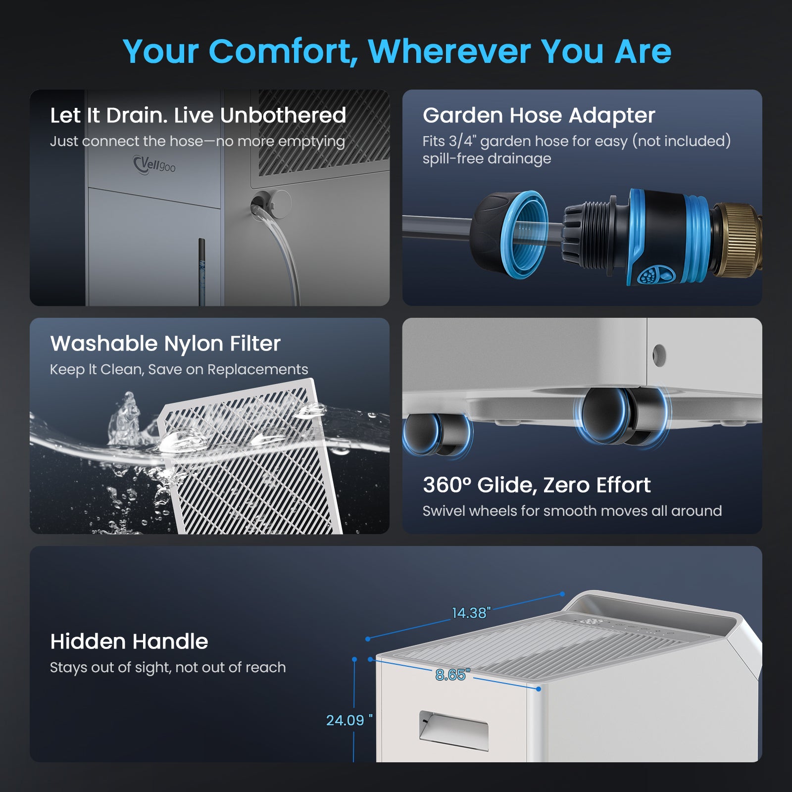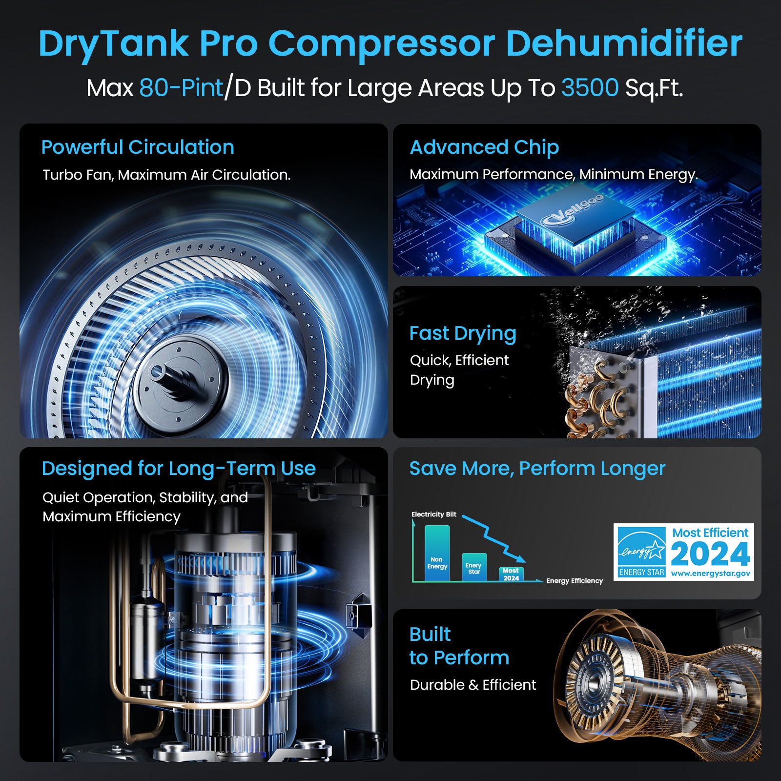 Vellgoo Max 80 Pints Energy Star Dehumidifier for Basement with Drain Hose(3,500 Sq.Ft ) for Home