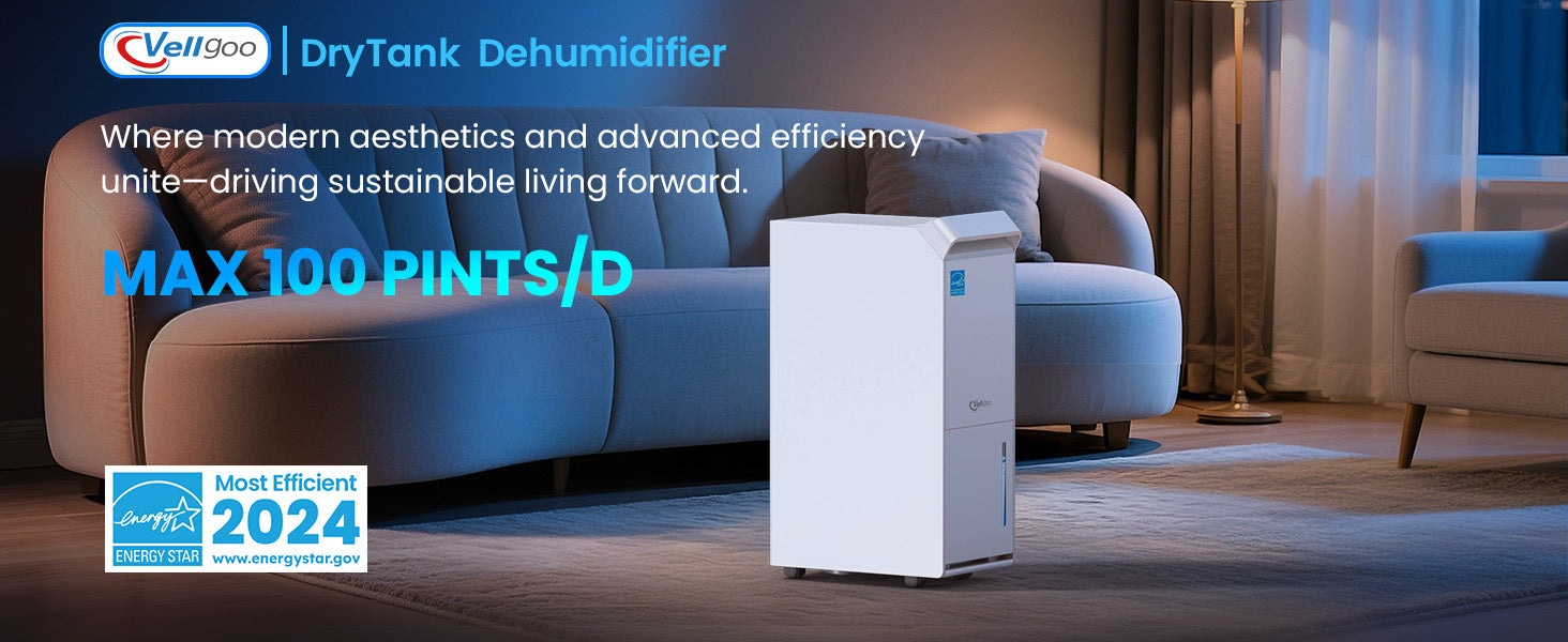 Vellgoo 100 Pints Energy Star Dehumidifier with Pump & Drain Hose(5,000 Sq.Ft) for Home